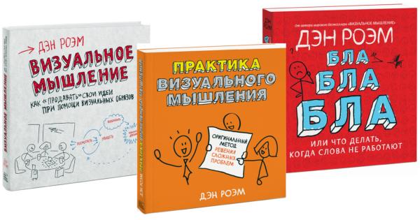 Если теория и практика визуального мышления вас по-настоящему увлекут, могу рекомендовать знакомство и с третьей книгой Роэма: «Бла-бла-бла или Что делать, когда слова не работают». Она рассказывает, как объединить для решения проблем инструменты визуального и вербального мышления, простые картинки и простые слова, точно отражающие суть проблемы.